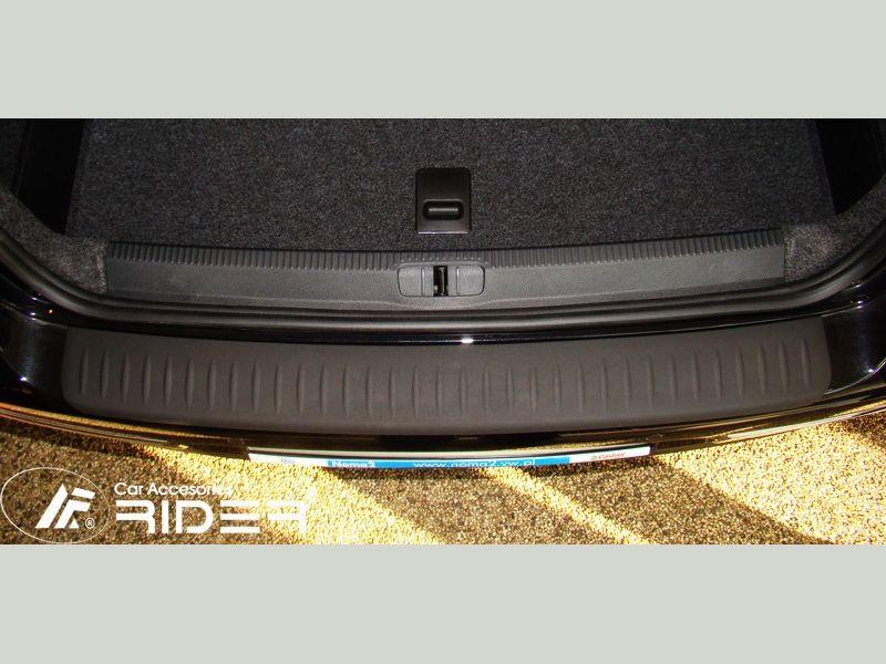 Ochranná černá krycí lišta zadního nárazníku od výrobce RIDER pro vůz Volkswagen Golf VII hatchback, od roku výroby 2012 ->, o přibližném rozměru 950 x 105…