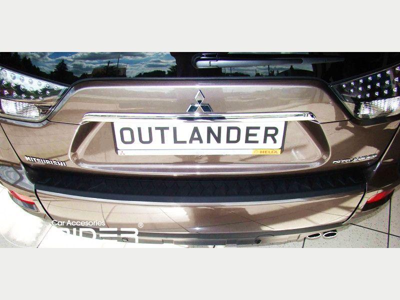 Ochranná černá krycí lišta zadního nárazníku od výrobce RIDER pro vůz Mitsubishi Outlender, rok výroby 2006 - 2013, o přibližném rozměru 1132 x 75 mm.