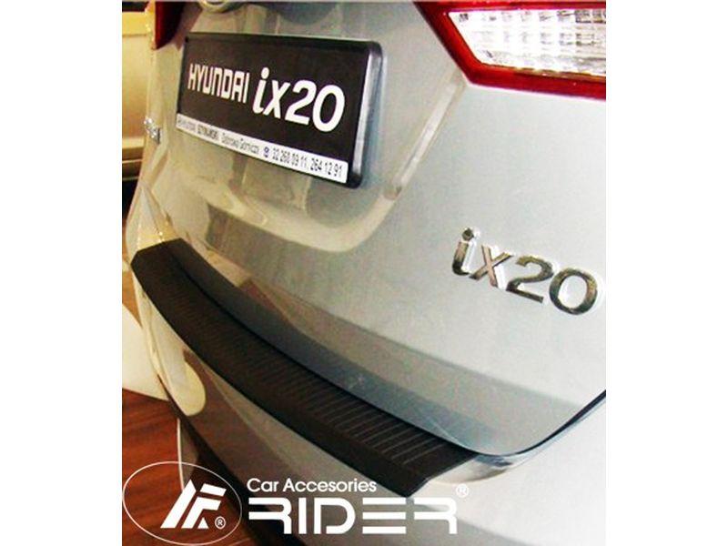 Ochranná černá krycí lišta zadního nárazníku od výrobce RIDER pro vůz Hyundai ix20, od roku výroby 2010 ->, o přibližném rozměru 870 x 74 mm.