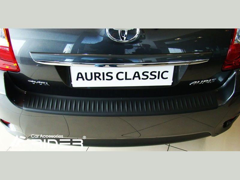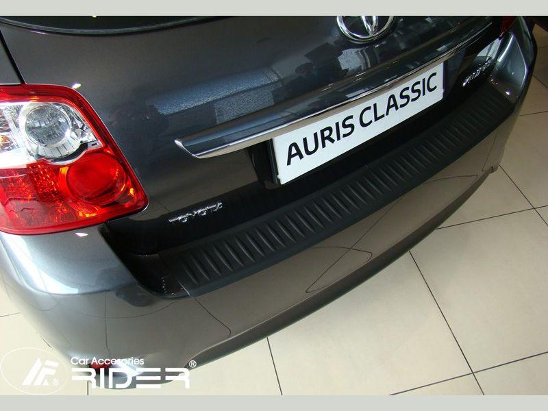 Ochranná černá krycí lišta zadního nárazníku od výrobce RIDER pro vůz Toyota Auris I, rok výroby 2010 - 2012 , o přibližném rozměru 1063 x 128 mm.
