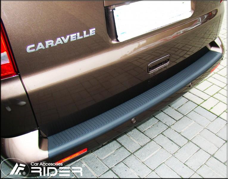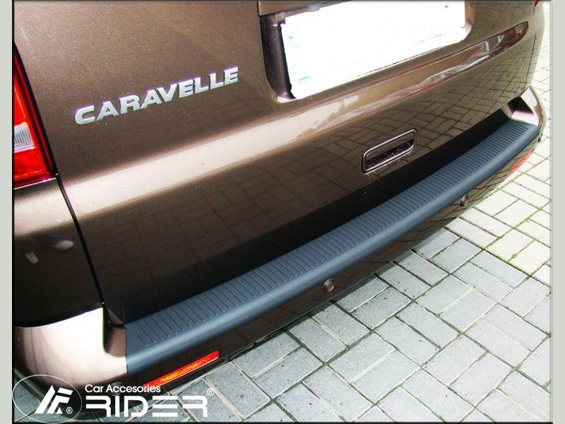 Ochranná černá krycí lišta zadního nárazníku od výrobce RIDER pro vůz Volkswagen Transporter T7 Multivan, od roku výroby 2022 ->, o přibližném rozměru 1290 x 108…