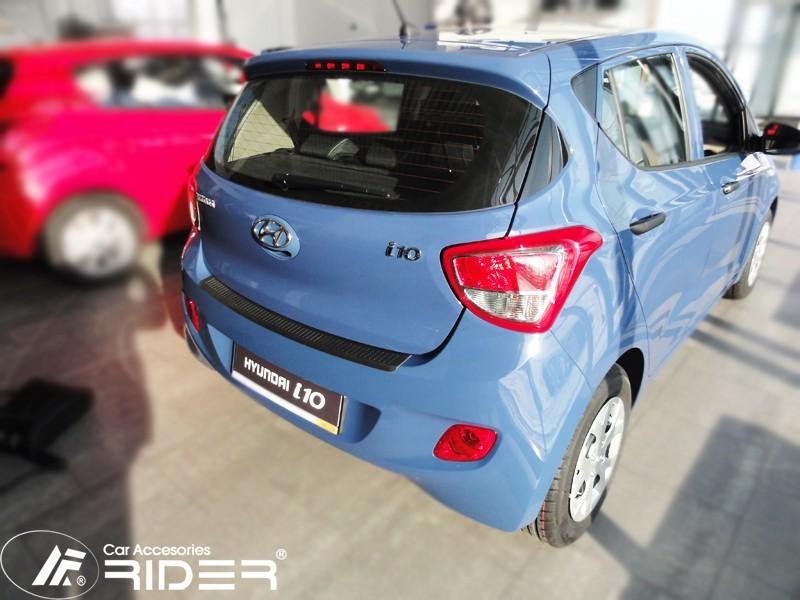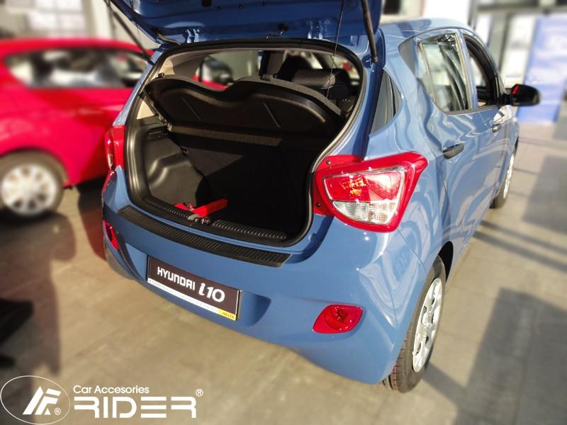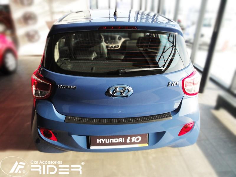 Ochranná černá krycí lišta zadního nárazníku od výrobce RIDER pro vůz Hyundai i10, od roku výroby 2013 - 2016, o přibližném rozměru 900 x 73 mm.