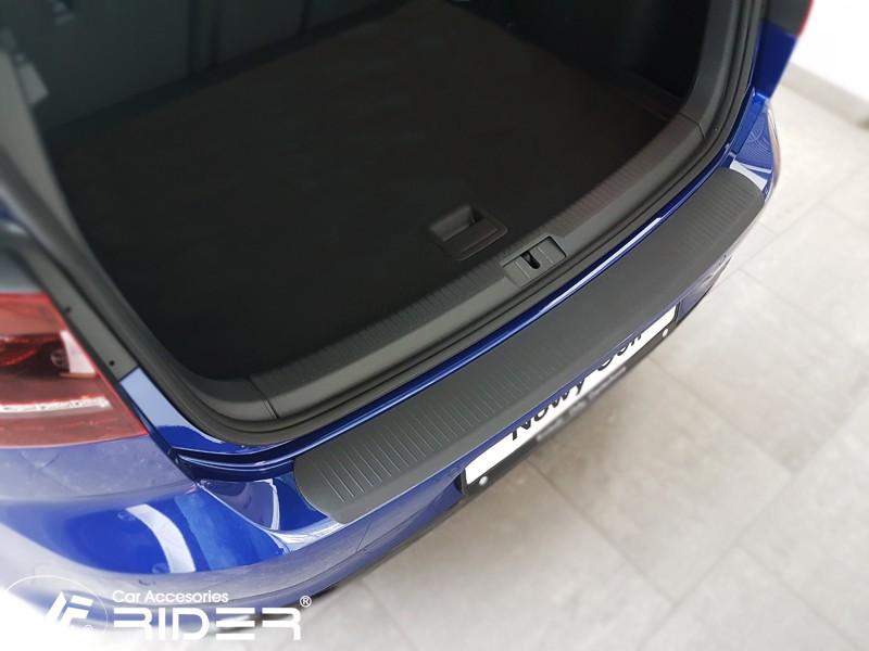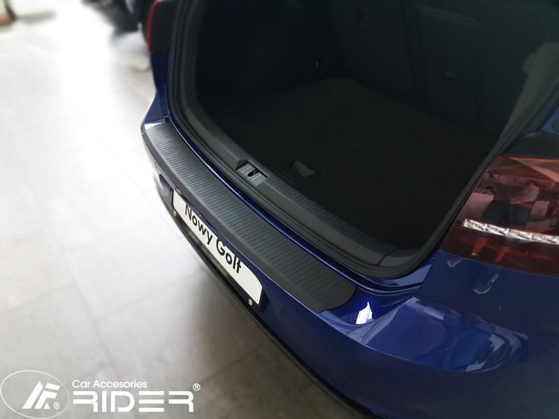 Ochranná černá krycí lišta zadního nárazníku od výrobce RIDER pro vůz Volkswagen Golf VII hatchback, od roku výroby 2012 ->, o přibližném rozměru 950 x 105 mm.