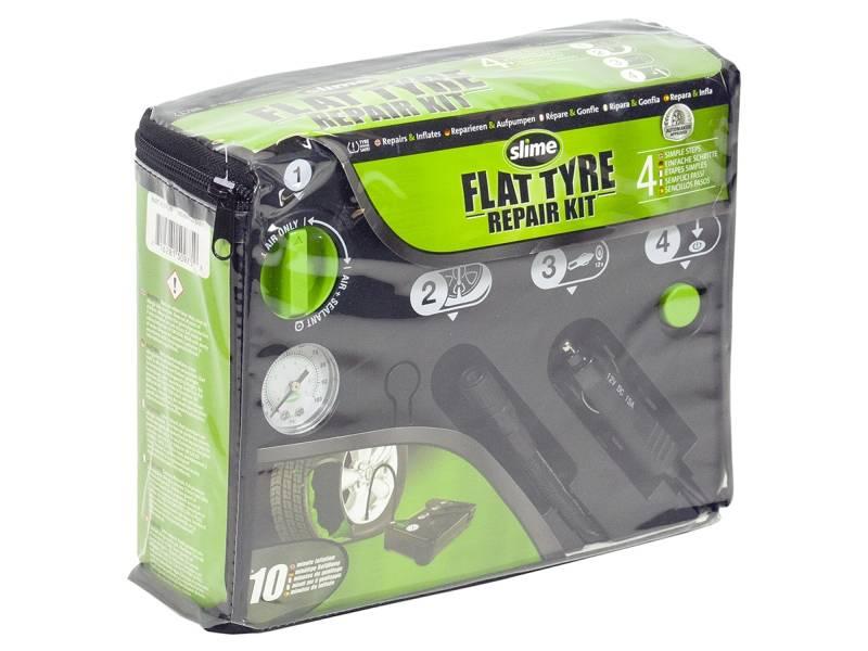 Automatická opravná sada Slime Flat Tyre Repair Kit je patentovaný systém umožňující opravit prázdnou pneumatiku a to pouze za 7 minut a tím minimalizovat čas strávený na nebezpečné silnici.