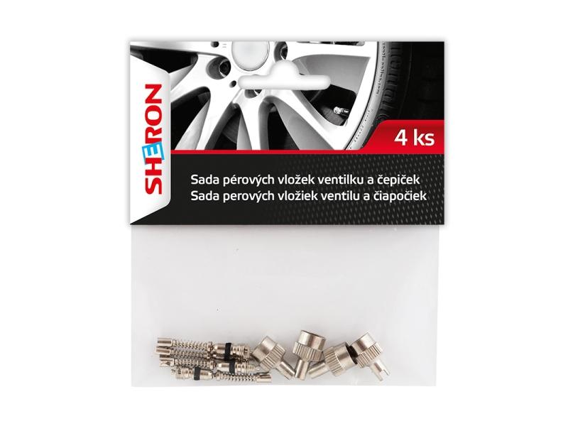 Čepičky na ventilky a pérové ventilky sada 4 kusy