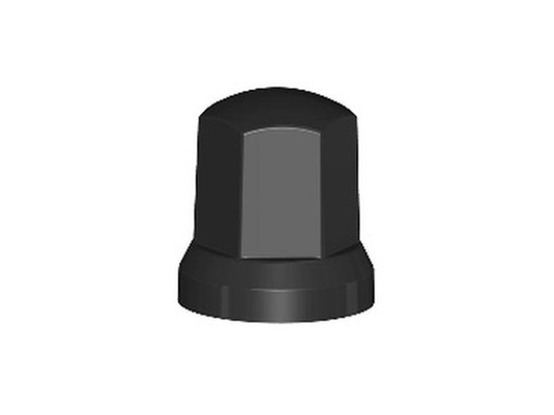 Černá plastová krytka matice a závitu kolového šroubu, matice se šestihranem 32 mm.