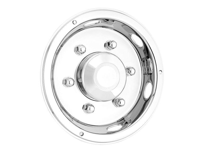 Poklice na přední nápravu typu-Deluxe na disky 17,5". Kryty kol přední 17,5" nerezové provedení Kryt kola chrom Poklice pro přední osu vozidla, upevnění při pomoci…